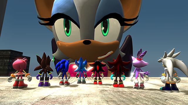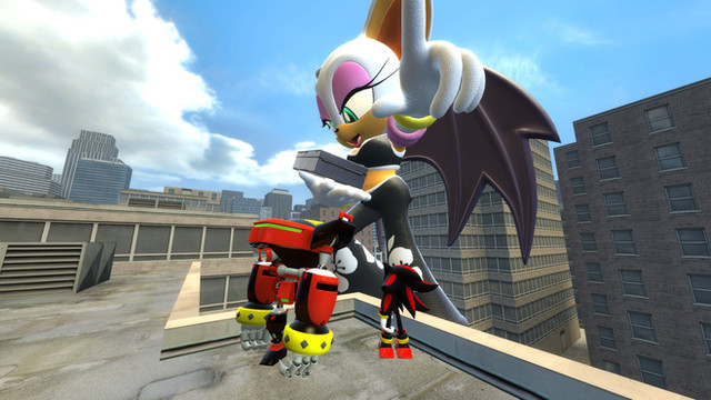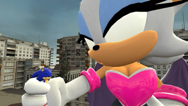 I was normally gotta do a pic of Shadow's shocking reaction of Rouge being gigantic, but Shadow riding on top of a Giantess Rouge much better.