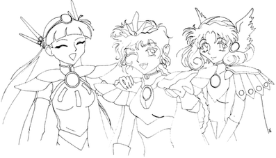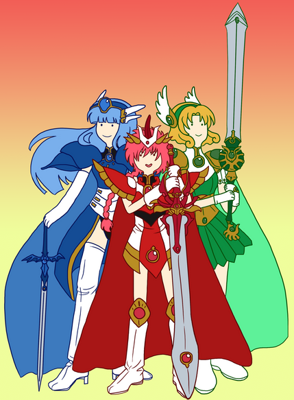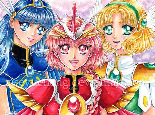 This is a picture I'm currently working on for a Knights of Rayearth contest. I'm only partially finished... needing to put more details into the armors of Hikaru and Fuu as well as detailing the skin, adding a background, and fixing minor things. It's been really fun to make and I'm surprised at how well it's turning out. ^-^ I think it's because my sister let me borrow her tablet because Jessi made her.. hehehe.Related content