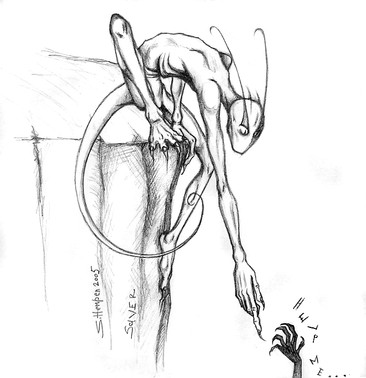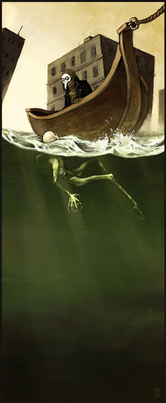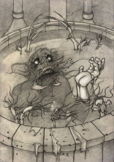 And I love the direction in which the eye is forced to take when looking at this piece; Firstly at the Fearie and then following its gaze towards the hanging man and realizing. It's simplistic beauty, but also so deep.
