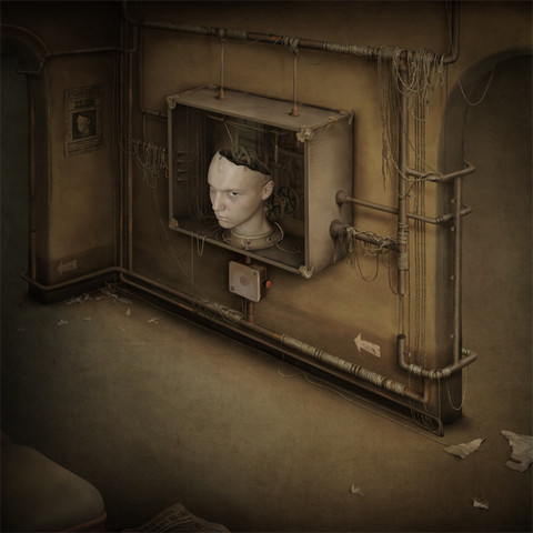 This is dreadfully, fabulously unsettling. Every detail, from the wine bottle on the floor to the faucet, is delightfully surreal and tantalizingly confusing, like Homestuck or Hieronymus Bosch. The image seems to tell a story, but it's not clear what it is.