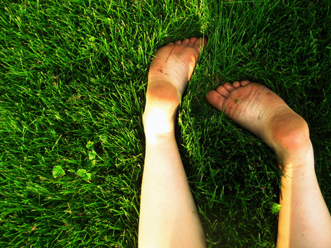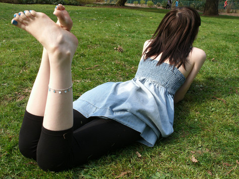 Beautiful girl and feet. The grass looks so green is surreal!