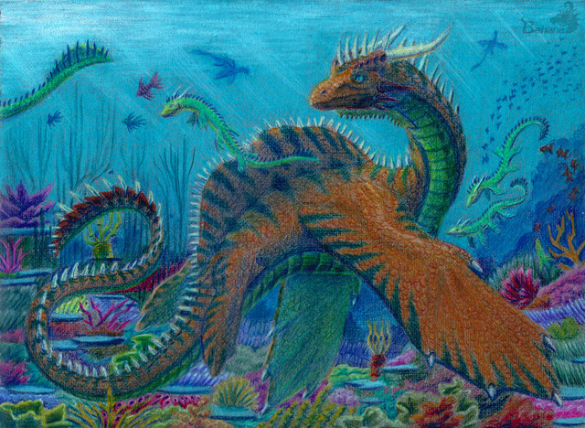 #colorpencil #cubs #dragon #dragonart #fantasy #fantasyart #fantasyworld #illustration #lake #migration #river #rocks #seaserpent #serpent #traditional #traditionalart #wyrmling #serpentdragon #dragonillustration #art #behane