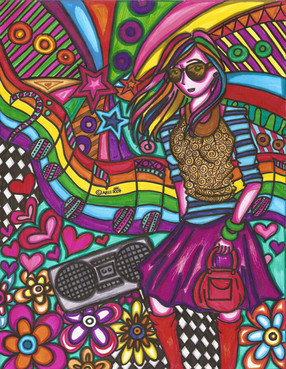 those colors are fabulous! And the little background pictures are so cute, haha. Looks like you're getting better at drawing people, too. Awesome work!
