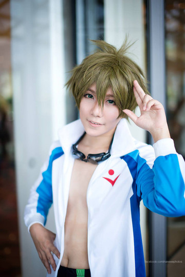 I've been doing these trial cosplays to prepare for putting together a new panel presentation on cosplay makeup and characterization that I'll be doing overseas. I figured that showing myself as different characters from a single series would be an amusing way to illustrate how angles, expressions and makeup can help one person look different as they depict different characters. Here's what I've done for the anime, Free!