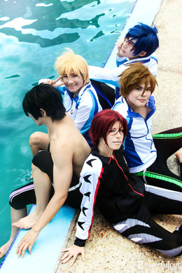 Haruka Nanase, Makoto Tachibana, Nagisa Hazuki, Rei Ryugazaki and Rin Matsuoka all by meGroup cosplay, forever alone style!