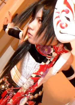 Great mask - I love drawing this kind of mask on my characters :3 And the composition is beautiful, the reddish string flowing back at the top of the photo.