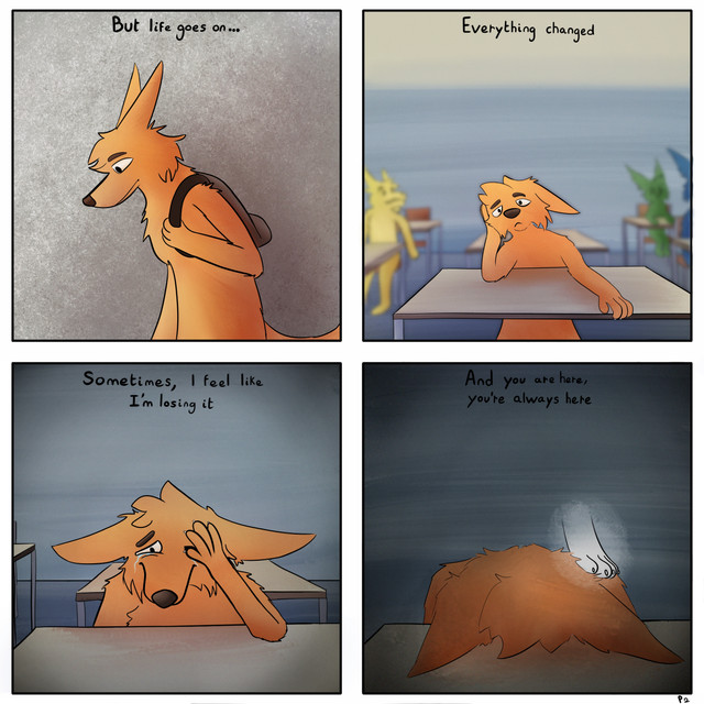 #alone #artwork #comic #darkness #furry #lonely #motivation #past #sad #tired #unmotivated #losing_interest #giddydog #wanting_popularity #comicart #depression #digitalart #furryanthro #furrycomic #fursona #giddy #sitting #sleeping #furrycharacter #artworkdigital #depressionart