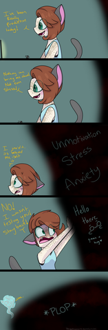 Based off GiddyDog on their experience in losing motivation, don't worry, he is doing fine now and is ready to make more art ;3PS: This is not a joke, some people can lose their motivation because of intense wishing for popularity and not getting the results they want, the only way to gain motivation again is to know that you value your own art even if nobody can see it, thanks for reading this comic! luv ya all ^w^