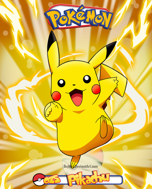 that's a really good picture of my favorite pokemon Pikachu an electric-type and thje evolved form of pichu that you've made,bejitsu.