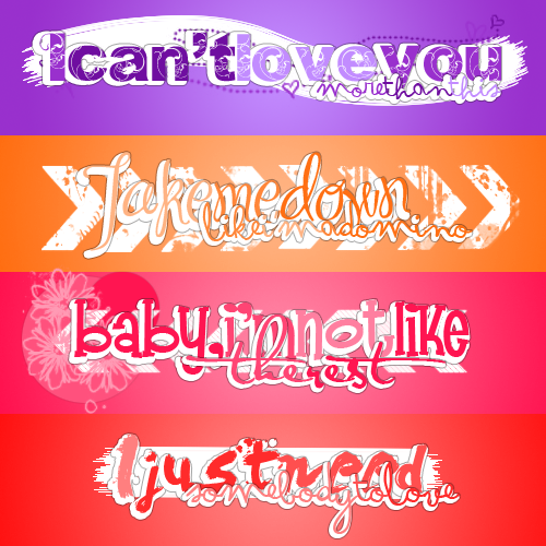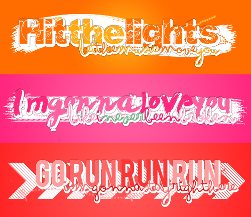 Éste es el pack de Textos PNG que había mencionado anteriormente. Son básicamente las últimas canciones que escuché por el momento. Espero que les gusten tanto como a mí#Contiene.