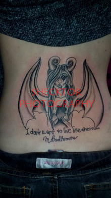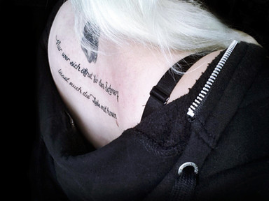 i really like the photo, love the black and white. also, i love what the tattoo says. to me, it says you have a lot of courage to tell people that outright. you know how some people pretend they're perfect. it's even hard for me to sometimes tell people all the things i've done.