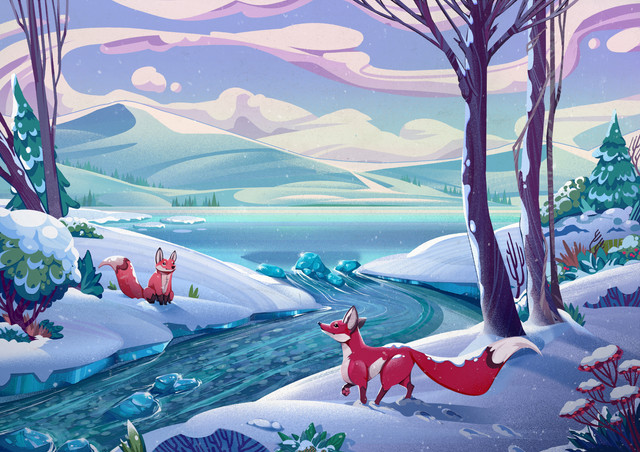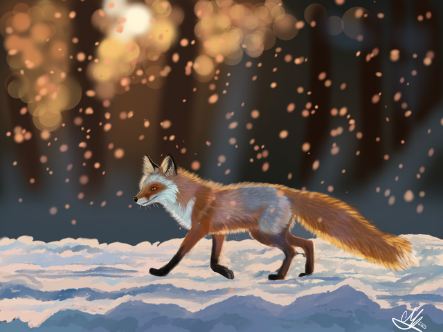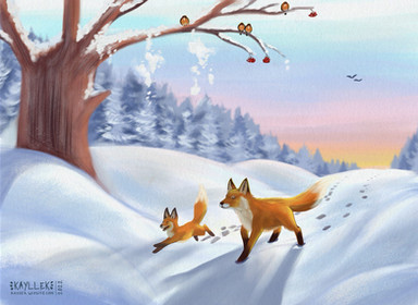 #fox #illustration #snow #sunset #winter