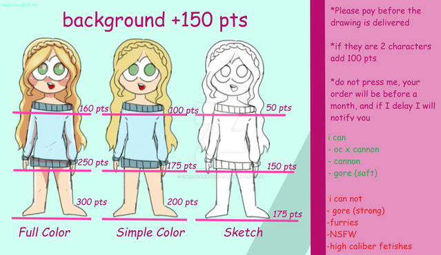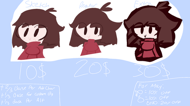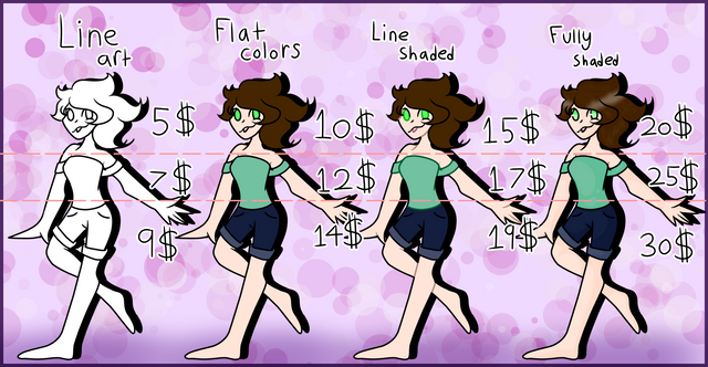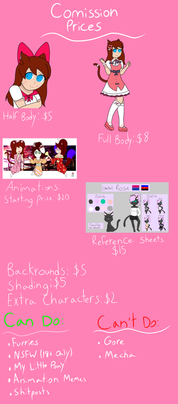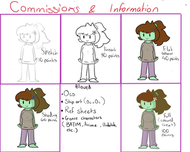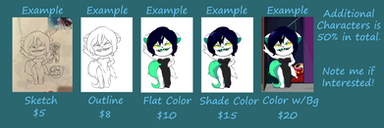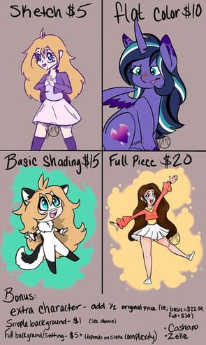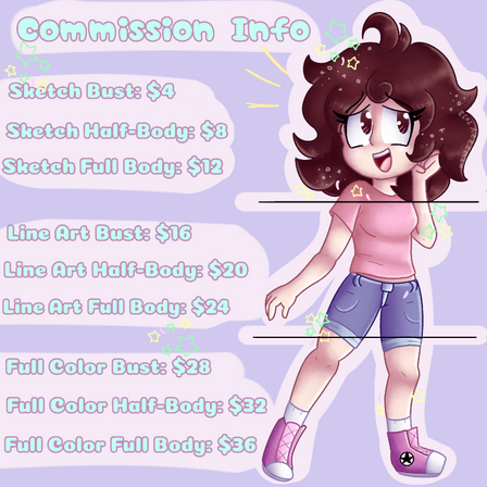 Here's the chart for my commissions!Send me a note so we can discuss what you'd like!