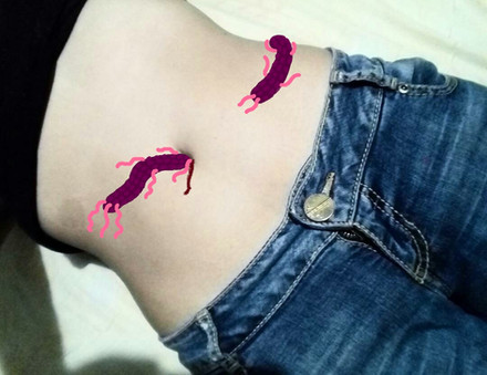 Just getting a bunch of Bert up and hoping I'll get request...*cough* anyways. Bert got a little carried away and went into his host this time to grab a snack. This person happen to have a problem with holding still. So Bert used some slim to glue himself in place until he's done. Hence, the yellow spots.This person belongs to themself.