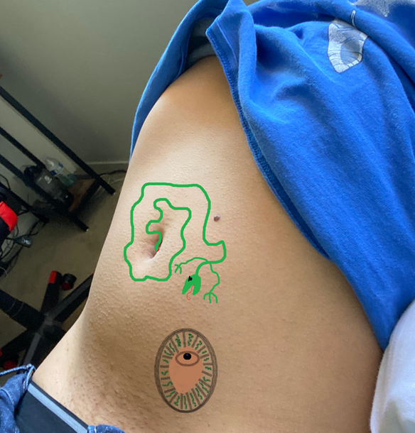 He collapsed to his bed and panted. The star shaped bug wasted no time latching onto his belly and plunging its mouth part into his navel. He moaned as it wiggled around the inside of his navel and broke through the bottom. He had to pull the thing out, but he couldn't quiet control his arms enough to grab hold of it. His hips bucked and he cried out in shock as a bolt of energy shot through him from the star bug. "What's...happening..." he panted and moaned. Arching his back slightly, he could feel the start bug's body pulsing on the lip of his navel. The mouth parts shifted inside his navel tunnel and he shuddered. He rolled his hips side to side, trying to arch his back enough to push the bug off. The efforts were useless. A strange tingling sensation spread from the bug and he slowly lost control of his body. His arm raised and his fingers lightly stroked the bug, but not by his choice. "You will be a good host, just relax and I will take it from here..." said a deep rich voice in his head. His hand stroked down the star bug and over his belly. He moaned again and watched everything go black