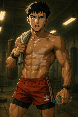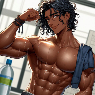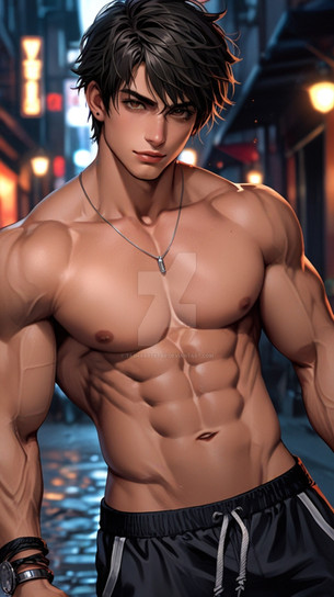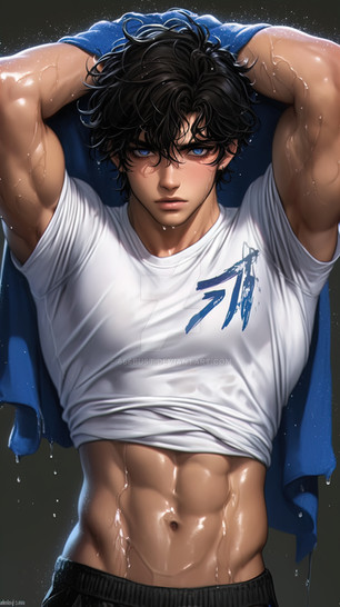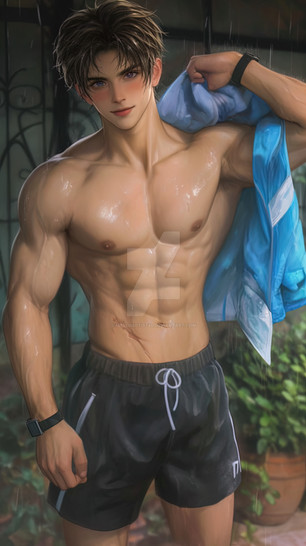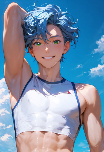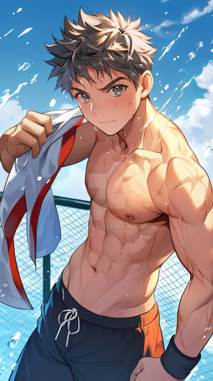 #digitalart #beach #anime #fanart #digitalpainting #malecharacter #characterdesign #originalcharacter #adoptable #adoptables #ai #hotboy #muscular #sportswear #sweating
