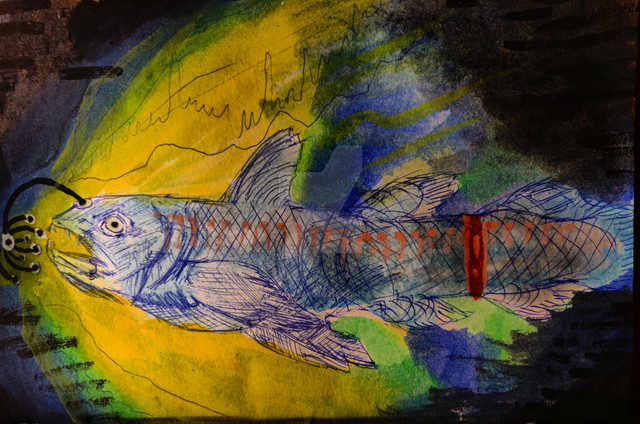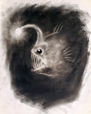 #animal #blackwater #catfish #charcoal #dark #drawing #fish #horror #macabre #monster #som #swim #water #sheatfish #pasteldrawing