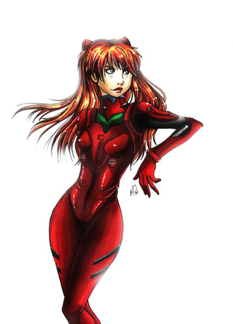 Had a day off, so I decided to colour this image. There are parts I don't like but over all I like it.Asuka's plug suit reformed to look like Jessica Rabbits dress.