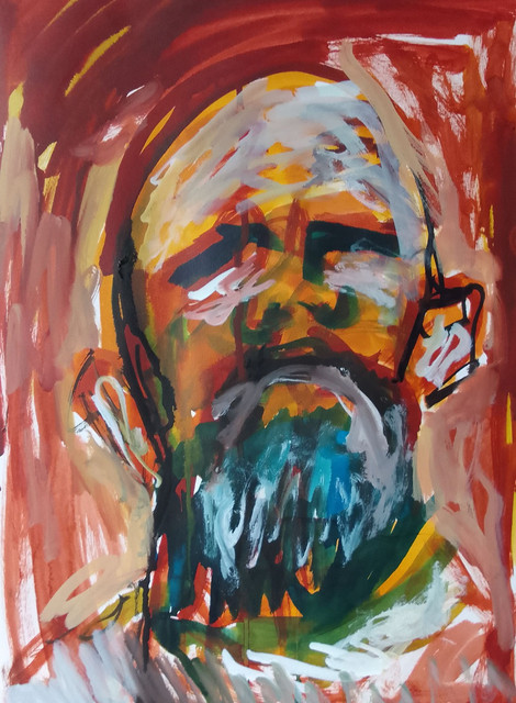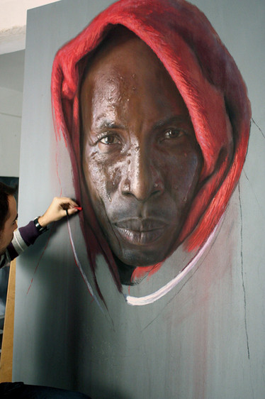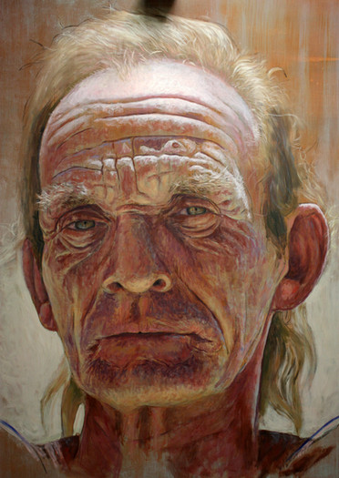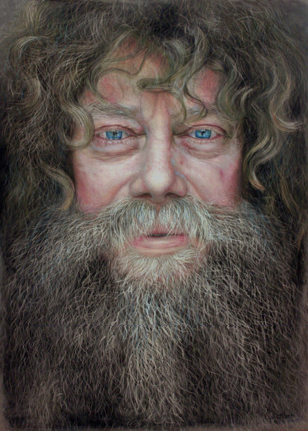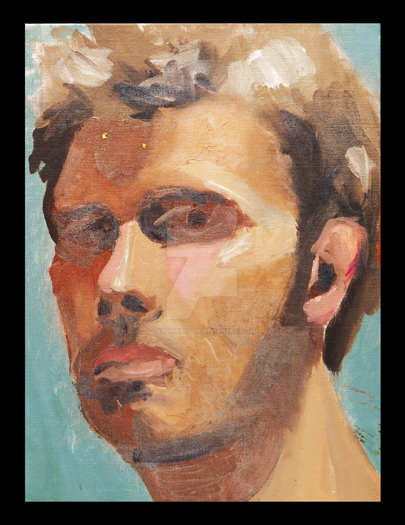 Beautiful portrait! I love the intensity of your shadows, the way you worked the pigment and texture into them to really draw out the face from your background! Brilliant!