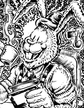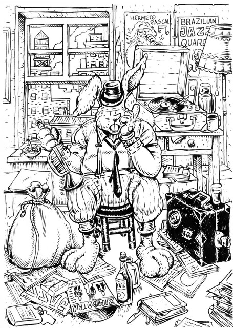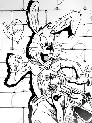 Roger Rabbit Daily Drawing.4x6 ink on bristol with some whiteout and white paint.