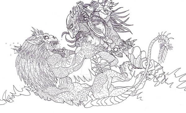 happy you like it-i will show how his color sheme looks when avp neca predator figures come out-gonna make another custom of him with propper coloring,he has platinum color armor in my mind,i only like how the dreads ended on this drawing-grey tips-with lineart i never could show that aspect