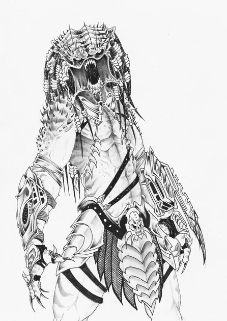 Hello.For this I wanted to draw a really nasty looking Predator. One trully menacing. I took some of the Berserker face.The idea was he is in a alien hive blasting some aliens head...but i didnt finished it hehe.