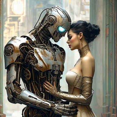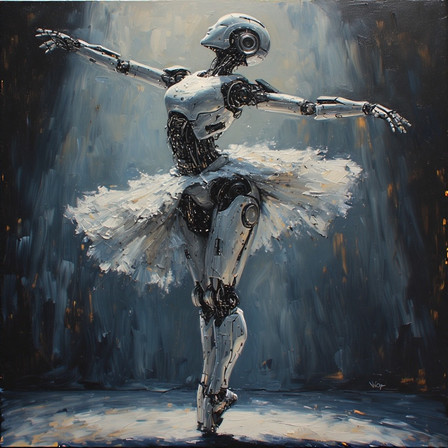 #dancepartners #roughpainting #rustyrobot #danceart #partnerdance #humanandmachine #symbioticrelationship #vintagetechnology #roboticrhythm #robotreflections #selfimprovementtech #loosestrandofhair #complicatedsteps #danceswithrobots