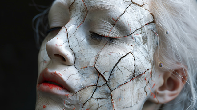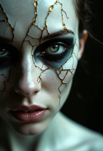 #artisticexpression #brokendreams #emotionalart #unconventionalbeauty #porcelainbeauty #creativityart #cracksinreality #imaginativeart #surrealartistry #fragmentedidentity #artloverscommunity #stylizedbeauty #elegantfractures #artsiticelegance