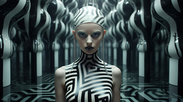 #fashionillustration #graphicart #zebrastripes #printondemand #statementpiece #bodysuitfashion #boldpatterns #benderbones #stripedartwork #subversivestyle