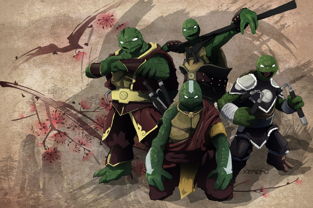 This is a crossover image I made for fun. Eventually I plan to start my own Teenage Mutant Ninja Turtles gallery. Anyway, one day I got an idea for a crossover between The Last Airbender and Teenage Mutant Ninja Turtles. I figure it's set an AU where the Turtles and all the other characters live in the world of Avatar. Each one of the Turtles is a different kind of bender and together they'd make a great team. Each Turtle's element is based on their skills and personality. Naturally Raph would be a Firebender and Leo would be a Waterbender. Mikey would be an Airbender and Don would be an Earthbender, heck I think Don could also be a Metalbender. I figure Raph would be good friends with Zuko and Mikey would be good friends with Aang. Plus, I feel like if Mikey was an Airbender he could use his nunchucks to enhance his bending or something, like maybe he could use them like propellers. Anyway, hope you like it.Related content