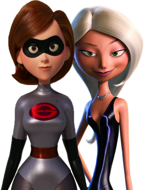 Edna: Super models! Ha! Nothing super about them, spoiled stupid little stick figures with poofy lips who think only about themselves. Feh! I used to design for gods!After I posted that image of Mirage this idea came to mind and I like it. In that dress she could definitely pass as a supermodel and she would definitely fit in Milan. I understand how Edna does not care for supermodels because she used to make designs for superheroes. However I think she might feel differently about Mirage, she's not stupid, not selfish, and not spoiled. She was never really evil. Anyway, I thought they would go together in an image like this. Imagine that Edna designed her dress and they are presenting it to a crowd of people or something.