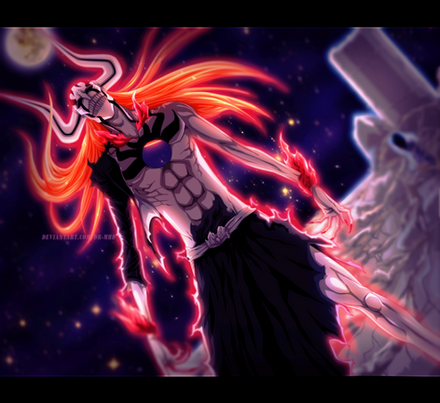 I love Ichigo's hollow form. He looks so beautiful. O: I just watched the most recent episode where he protects Rukia in that form. Go Hichigo! <3