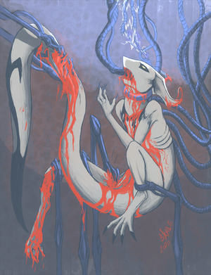 The monster before him ignored the threat display and instead outstretched a skeletal, metal hand toward Gerra. The young kymera was looking more petrified by the moment, not by the monster, but by his dear “brother’s” possible actions.