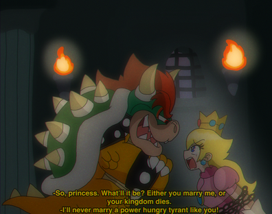 Too bad Bowser is too full of himself, too arrogant, too oblivious, and too loving the idea of laying the smack down on Mario to ever think of hitting the button himself. He's a man child who just has way too much power in his hands.