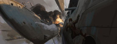 haha, thank you, actually I did the city scape first when i was trying out different brush options, then I firgured I need something there to make it look complete, my friend suggested me just do another flying ship, so i did it, and I like how it doesnt make sense at all