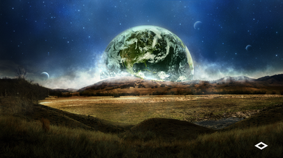 Distant BlueA view of some hills and in the sky a blue planet can be seen looming above. The looming planet gives some feeling toward the scape and I like it alot. Enjoy
