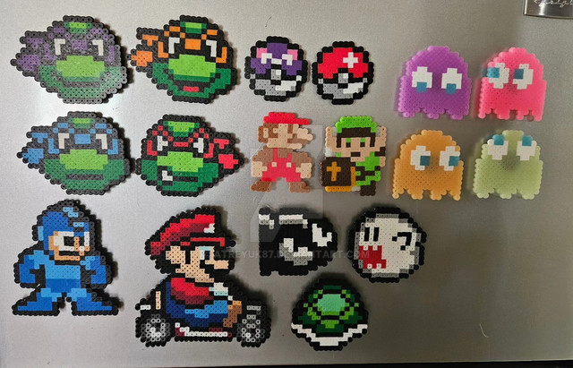 #8bit #duckhunt #legendofzelda #link #luigi #mario #mspacman #ninjaturtles #nintendo #pacman #perlerbeads #supermariobros