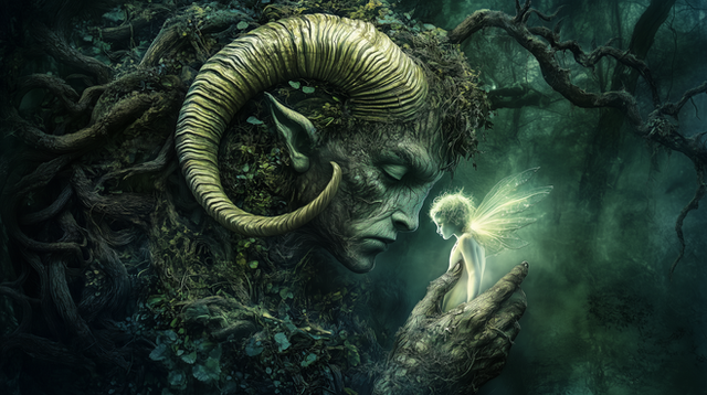 #ai #deep #dramatic #fairy #fan #green #handsome #inspired #magic #monster #pagan #pan #realistic #sad #unreal #art #labyrinthmovie