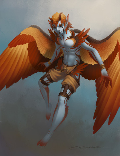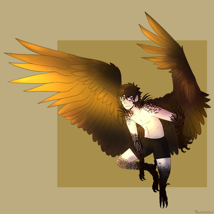 I have time off at long last! So, what better way to celebrate than drawing my bird-man? I'm honestly, really, really proud of of how this turned out! Especially the wings.I recently started using a more proper digital-painting technique, and surprisingly enough it's actually noticably faster than the way I usually do things like shading, so, I might stick to this indefinitely? We'll see!
