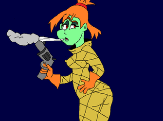 I wonder if the gun's recoil makes her booty jiggle.