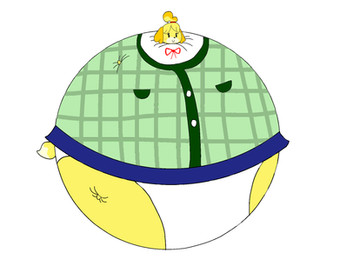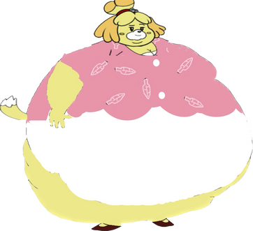 here's a picture of isabelle inflated like a balloon! from animal crossing.isabelle belongs to animal crossing and nintendo.