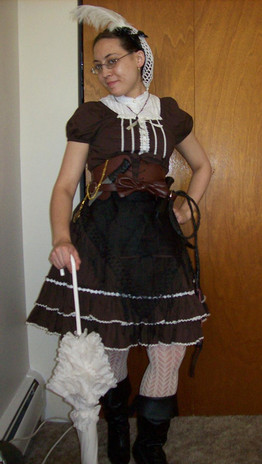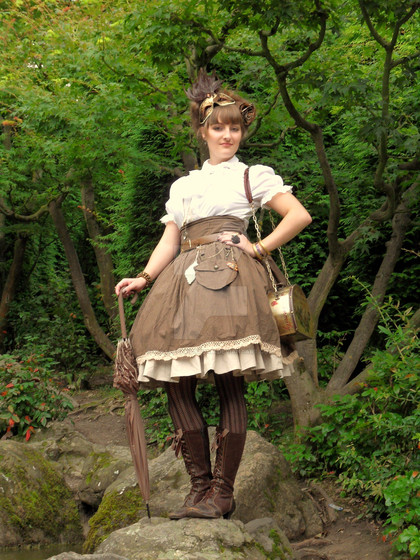 Here's a little series of photos my sis Veleven was kind enough to take of me after I attended a Steampunk themed wedding back in October of 2013. I created the outfit from bits and bobs, opshopping in Fremantle with my buddy Liz. I borrowed the hoop skirt from Carina, another great friend. I made my goggles out of foam and shoe polish, inspired in part by something incredible DenBow created (from real leather, mind!)It might not be Steampunk in its truest sense, but I did my best and had a lot of fun!