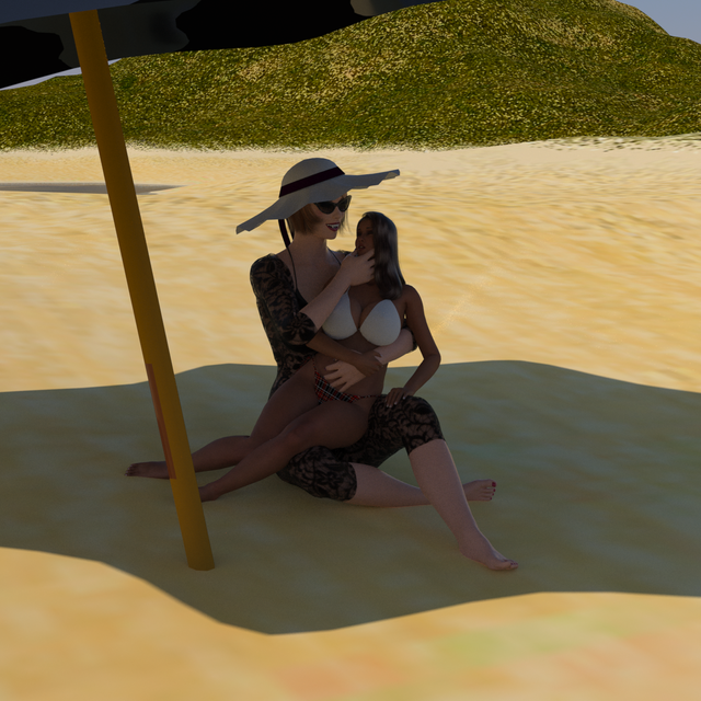 Something tells me the lady in blue doesn't care what the giantess in black behind her is going to do to her for handling her girlfriend like that, it'll be worth it?