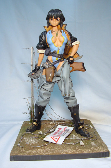 A resin model I bought. I can't remember the manufacturer. I don't know anything about the character except I understand that she's from some strange Japanese computer game and she's a vampire. I just liked the figure.I painted all by hand; no airbrush.