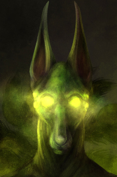 #black #dark #demon #dog #ghost #grey #halo #hound #jackal #light #spirit