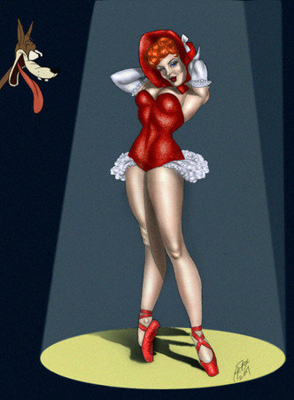 I made this for two reasons. 1. I wanted to try out Corel Painter. 2. I haven't drawn any humans in forever.This is Tex Avery's Red Hot Riding Hood. I was trying to go for a retro look but I don't think I achived it. I swear Red is Jessica Rabbit's long lost sister.