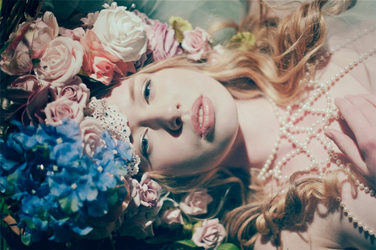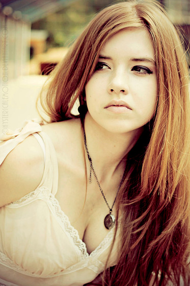 She's beautiful. I love how the glow of the sun goes around her like she's an angel or something. For some reason, maybe the clothes, are reminding me of a Victorian color photograph. I like her calm expression too