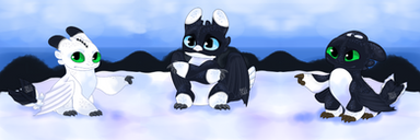 The three nightlights (Toothless babys) playing with a glowing orb in the hidden world.There so CUTE!!