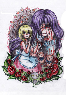 style experiment for class assignment.Junji ito-style Alice in Wonderland