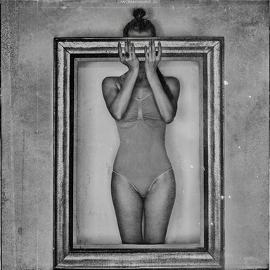 The frame, the way you've melded the mask with the rest of the photo is great. I love the inclusions of light and post cards as well. The framing is perfect too, nice full frameness. You've made a very charged photograph here and I love it. Recognizable but wacked at the same time.